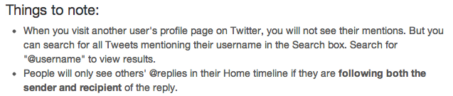 If you don’t believe me visit the official Twitter Help Center article “What are @Replies and Mentions?”, which clearly states “People will only see others’ @replies in their Home timeline if they are following both the sender and recipient of the reply” (bold in original).
