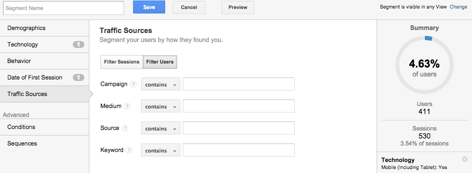 For those just starting out, I would highly recommend looking at resources offered by Avinash Kaushik (Digital Marketing Evangelist at Google), specifically one of his collection of solutions (aptly named Occam’s Razor Awesomeness, which includes segments), his blog, and for the eager beavers like me, his book Web Analytics 2.0, a treasure trove of tips and solutions.