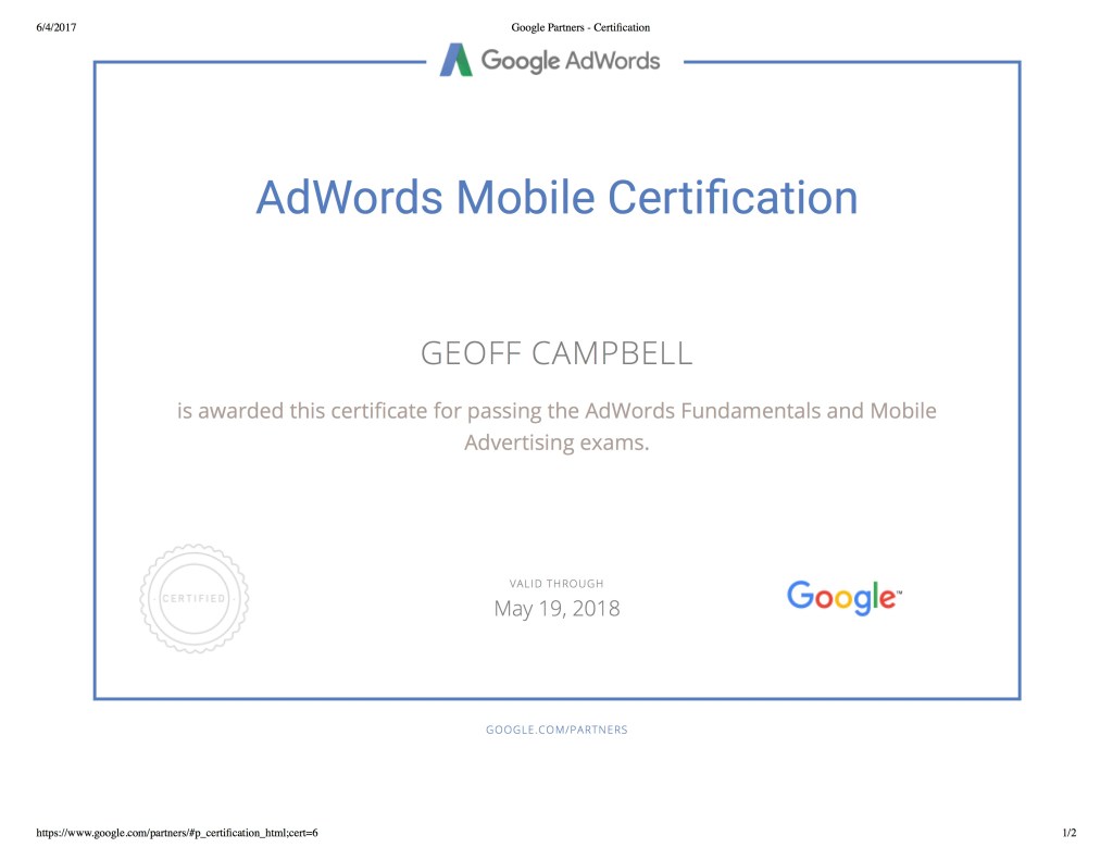 I recently earned Google’s AdWords Mobile Certification. The Mobile Advertising Exam covers these key topic areas: