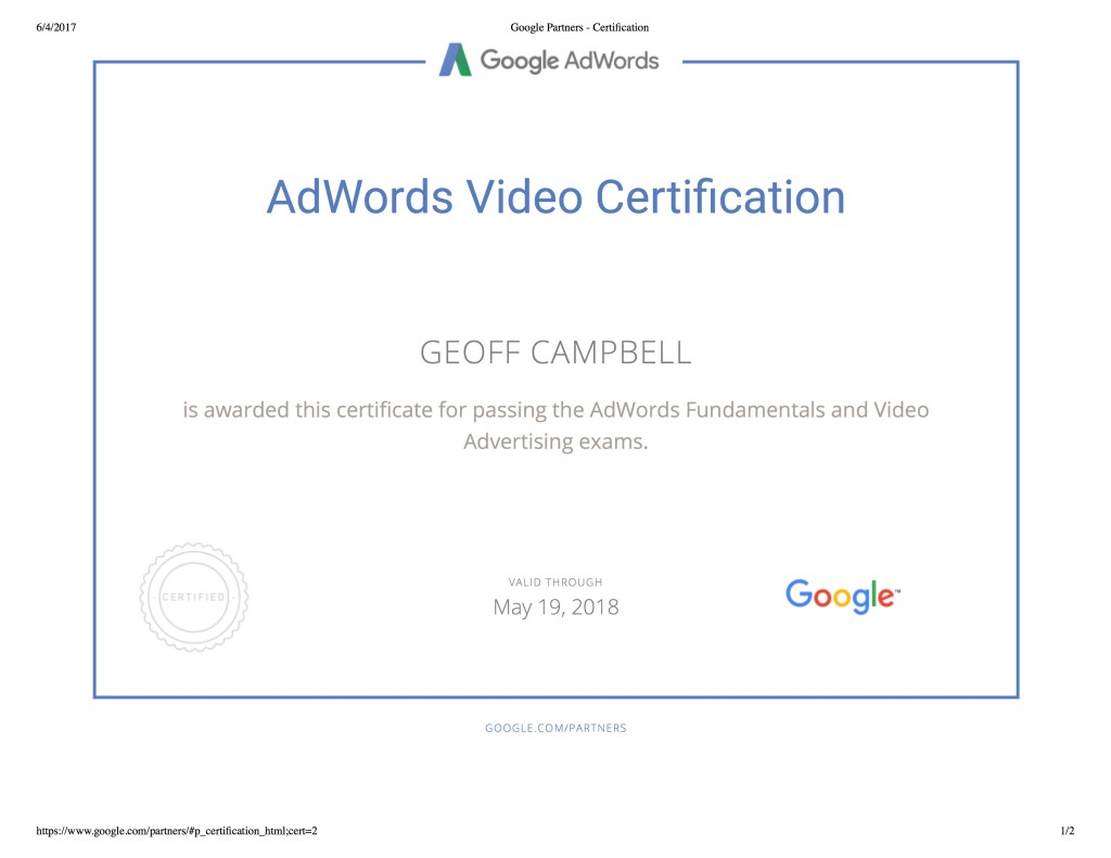 I recently took the time to put my skills and knowledge to the test and passed the AdWords Video Advertising exam.