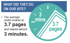 Search: What people search for on your site. Thankfully I added Google Custom Search to our site. This could lead to navigation changes or notes that your audience may prefer searching for their terms rather than navigating.